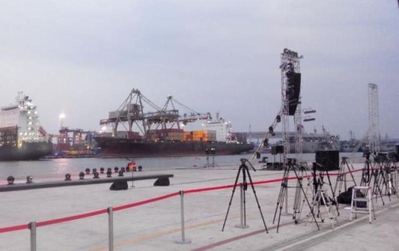 Kondisi Dermaga 300 Terminal 3 Tanjung Priok sudah terdapat Panggung, perangkat audio dan lampu sorot yang disiapkan jika Jokowi akan menghendaki mengumumkan kabinetnya disana.