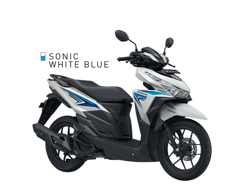 Honda Vario 150 eSP menghadirkan lima pilihan warna yaitu Exclusive Pearl White dan Exclusive Matte Black, Sonic White Blue, Titanium Black dan Bionic Red.