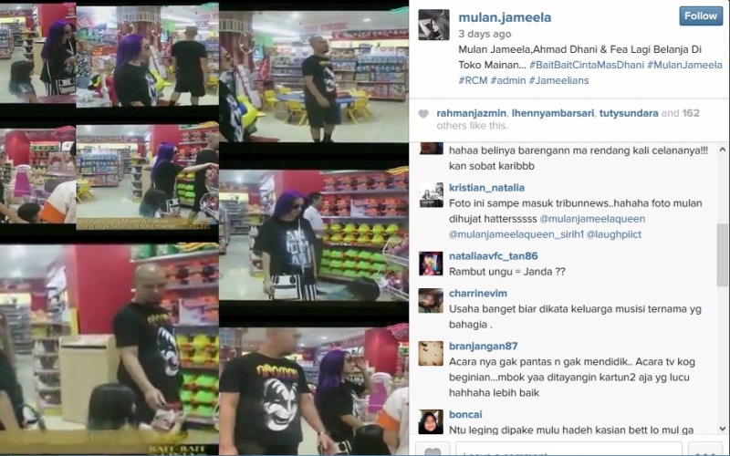 RANCAH POST – Kehidupan penyanyi fenomenal Mulan Jameela sepertinya tidak akan pernah tenang sejak ia menikah dengan Ahmad Dhani. Diketahui, Baru-baru ini, Mulan menjadi bahan bully-an haters pasca seorang fans mengunggah foto Mulan dan Dhani serta anaknya Safeea tengah berbelanja di sebuah super market melalui Instagram. Akun pengunggah foto tersebut bernama @mulan.jameela.