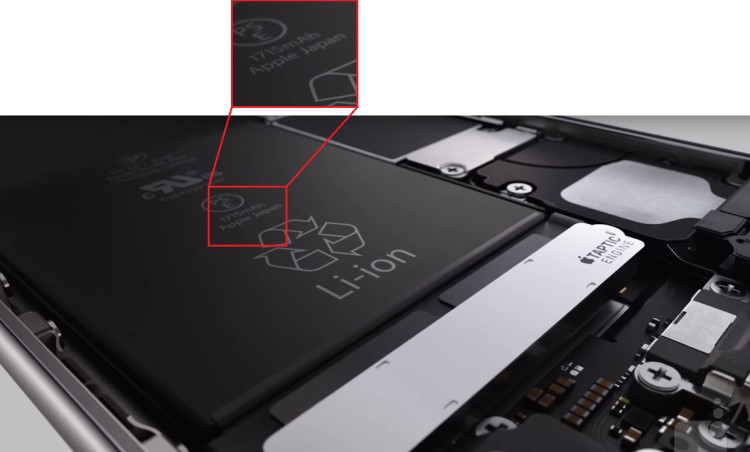 Dalam salah satu cuplikan video, tampak ditampilkan bagian dalam Apple iPhone 6s tersebut dan saat kamera menyoroti baterai, dalam sekilas kita bisa melihat kapasitas baterai tersebut yang mencantumkan angka 1715 mAh. Ini jelas merupakan sebuah penurunan, jika melihat handset Apple iPhone 6 yang menggunakan baterai dengan kapasitas yang lebih besar, mencapai 1810 mAh.