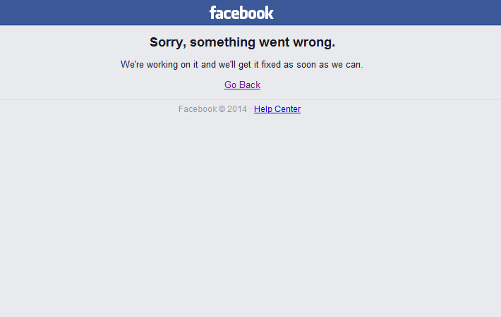 RANCAH POST – Pengguna jejaring sosial Facebook pada berkoar-koar di Twitter perihal website milik Marc Zuckerberg tersebut tidak bisa diakses dan hanya menampilkan pesan “Sorry, something went wrong. We’re working on it and we’ll get it fixed as soon as we can.” Kejadian ini dialami banyak pengguna yang diperkirakan terjadi di seluruh dunia pada Kamis (24/9/2015), pukul 23.30 WIB.