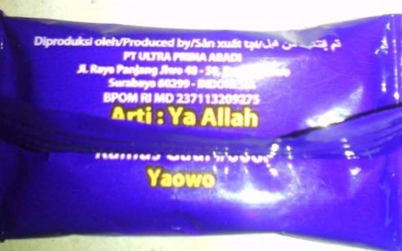 Diketahui, pada bungkus permen Rainbow yang diluncurkan oleh PT. Ultra Prima Abadi itu memang selalu memuat kata-kata kamus gaul. Diantara kata-kata gaul yang sering ditulis dalam bungkus permen tersebut, salah satunya terdapat kata Yaowo yang ternyata diartikan sebagai plesetan dari kata Ya Allah.