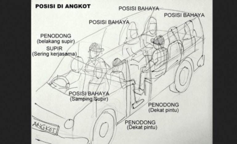 Jika Anda duduk di dalam angkot, khususnya perempuan, jangan pernah sekali-kali naik angkot yang penumpangnya laki-laki semua, dan kaca mobilnya hitam atau gelap. Bukannya berburuk sangka, namun setidaknya Anda harus waspada untuk mengantisipasi terjadinya hal-hal yang tidak diinginkan.