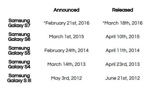 Samsung Galaxy S7 sendiri mulai dirumorkan akan hadir pada sekitar bulan februari mendatang, dan dirilis resmi bulan Maret kemudian. Kabar mengenai hal ini sudah beredar sejak beberapa waktu lalu. Namun demikian, rumor tetaplah rumor, tanpa kepastian tanpa ketegasan.