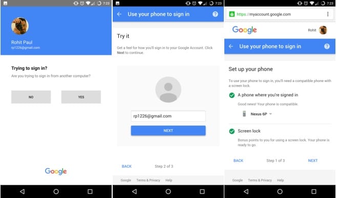 Dari screenshot yang beredar, fitur login tanpa sandi ini tampaknya dapat dipasang pada perangkat yang kompatibel dan perlu dilakukan setting terlebih dahulu. Dan setelah setting selesai, setiap kali Anda akan login ke akun Google baik di ponsel, tablet, komputer atau perangkat lainnya, Anda hanya perlu memasukkan alamat email, tanpa perlu kata sandi. Lalu meminta sistem untuk membiarkan Anda masuk.