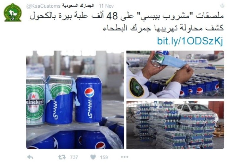 Dalam video tersebut, aparat berwajib di Arab Saudi berhasil menyita sekitar 48 ribu kaleng bir Heineken, merk bir kenamaan asal Jerman yang diselundupkan dengan cara yang cerdik. Kaleng-kaleng bir tersebut dibungkus dengan lapisan plastik yang menyerupai kemasan kaleng minuman bersoda asal Amerika Serikat, Pepsi.