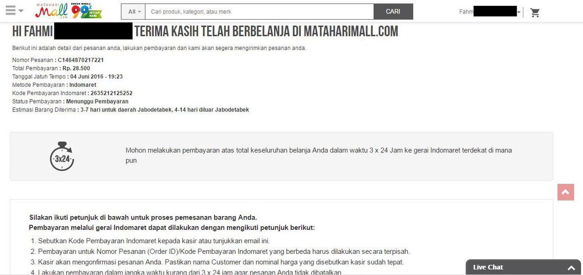 Dalam curhatannya tersebut, netizen ini mengatakan telah berhasil menjadi salah satu pemenang beruntung mendapatkan produk promo hoverboard yang dibanderol Rp28.500 dari harga asli yakni Rp.2.850.000. Bermodal terus refresh browser dan koneksi mumpuni, ia pun kemudian membayar tagihan Matahari Mall tersebut melalui Indomaret.