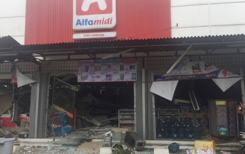 Tak hanya menghancurkan bangunan PHD dan merusakan kaca Alfamidi, tiga unit rumah dan satu unit mobil yang ada di sekitar lokasi ledakan itupun terkena imbas ledakan. “Belum ada korban jiwa. Saat kejadian itu masiha da tujuh orang karyawan Alfamidi, tapi semuanya tidak ada yang terluka. Dugaan ledakan ini berasal dari tabun gas 50 kg yang ada di dalam banunan PHD,” ucapnya.