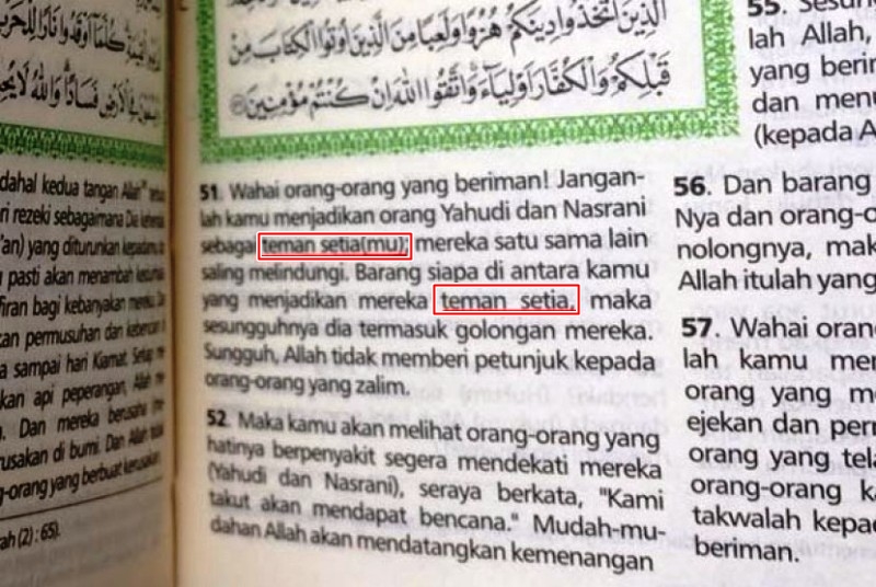 Dari hasil penelusuran di Metropolis Town Square, Mall Bale Kota, dan Tangerang City Mall, polisi mendapati adanya enam belas penerbit yang diduga membelokan terjamah Al Maidah ayat 51 yang harusnya mempunyai arti ‘pemimpin’ dirubah menjadi ‘teman setia’.