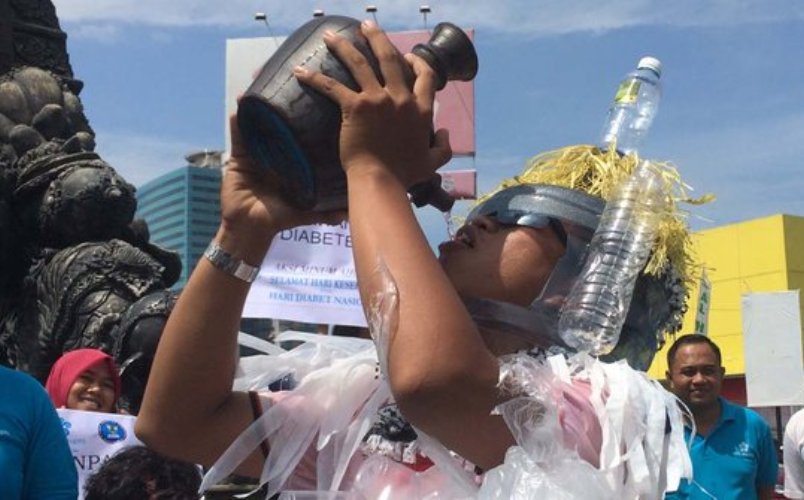 “Siapa saja, ayo perbanyak minum air putih, kurangi minuman bersuplemen agar kita lebih sehat, supaya kita terhindar dari diabetes,” kata Agus Widanarko, Koordinator aksi dari Badan Narkotika Kabupaten (BNK).