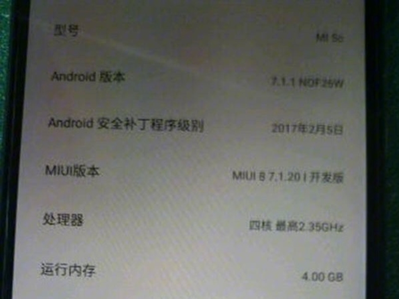 Menurut foto bocoran yang kini beredar, menampilkan layar perangkat Mi 5C yang menunjukkan bahwa handphone Android terbaru ini akan didukung prosesor Qualcomm Snapdragon 821, memiliki RAM 4GB, memori internal 64GB, dan berjalan pada sistem operasi MIUI 8.7.1.20 berbasis Android Nougat v7.1.1.