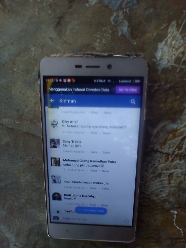Seperti diunggah pada salah satu grup smartphone di Facebook, pengguna Redmi 3S bernama Miend ALbucasis mengunggah tiga buah foto yang memperlihatkan ponsel kesayangannya itu terbakar di bagian atas.