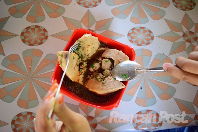 Karena penasaran, setelah berkelana ke Mie Baso Adipati dan Mie Baso Adem Ayem, Rancah Post pun melanjutkan perburuan kulinernya ke Luckceng untuk mencoba menu yang katanya paling ngehits dan banyak dipesan. Menu tersebut adalah bakso bunting yang harganya 30k.