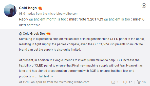 Dugaan ini juga diperkut dengan munculnya sebuah rumor di Weibo, yang mengatakan bahwa Mi Note 3 akan meluncur pada kuartal ketiga tahun 2017 ini. Dan ia juga kemungkinan akan dibekali prosesor Qualcomm Snapdragon 835 terbaru seperti Mi6 dan Mi6 Plus.