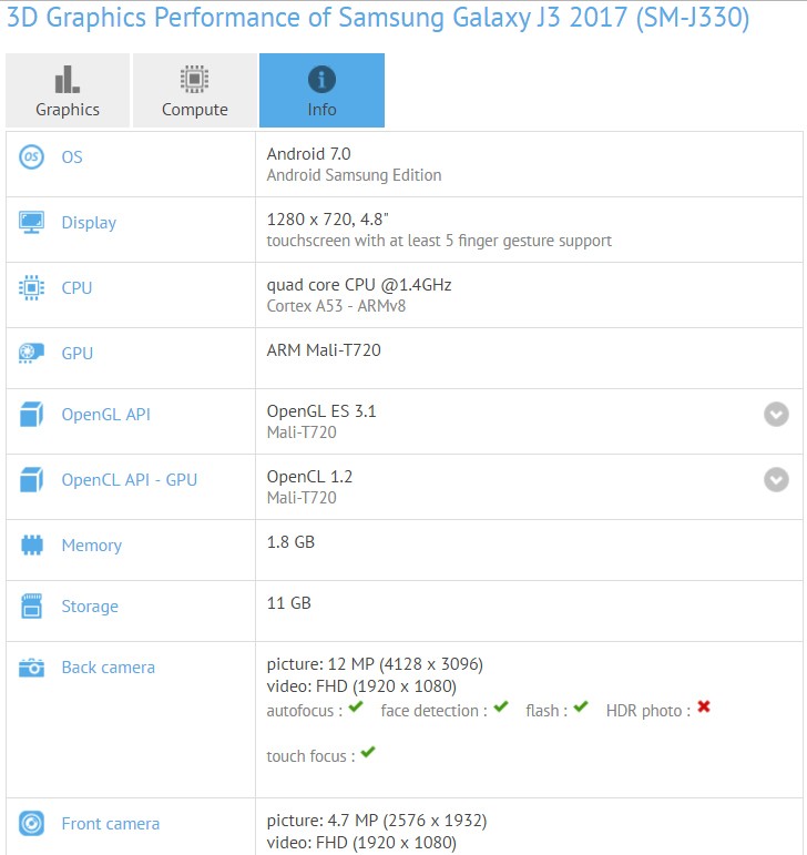 Adapun nomor model dari Galaxy J3 (2017) yang muncul di GFXBench ini adalah SM-J330 yang sama dengan versi Exynos yang muncul di GeekBench kemarin.