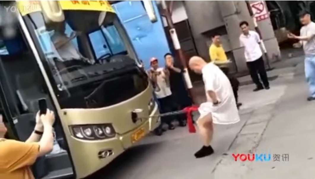 Yaobin yang dikenal memiliki kekuatan luar biasa pada penisnya itu memperlihatkan aksi dirinya menarik sebuah bus dengan alat vitalnya itu.
