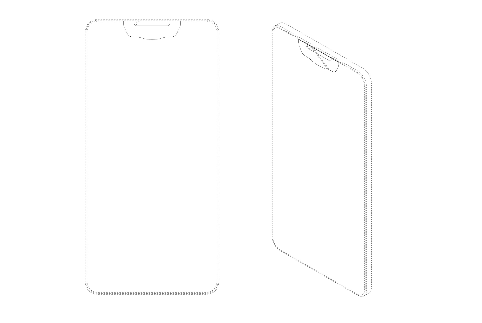 Desain baru ini memungkinkan penerapan layar yang lebih penuh, dengan bagian atas dipotong untuk penempatan kamera selfie dan speaker. Sementara sisi kiri dan kanan yang sedikit mungkin akan dipakai untuk ruang notifikasi.