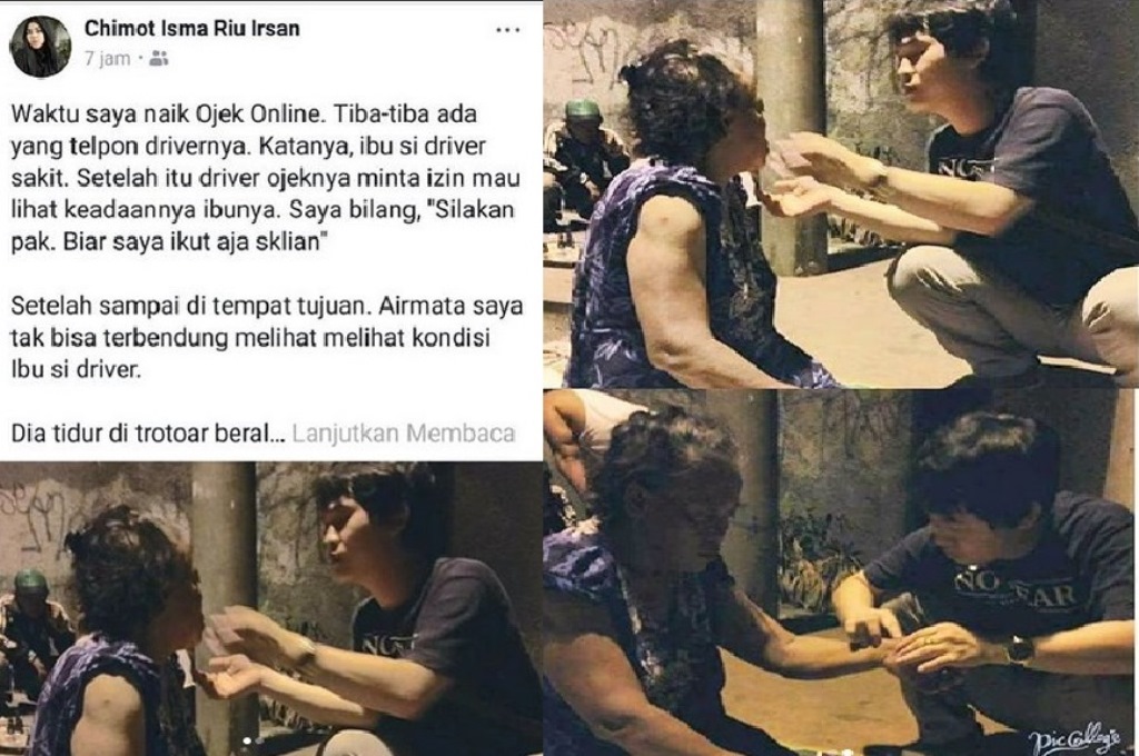‘Waktu saya naik ojek online, tiba-tiba ada yang nelpon drivernya. Ia berkata ibu si driver ini sakit. Driver itu pun langsung minta izin mau ngeliat keadaan ibunya’.