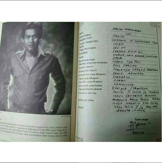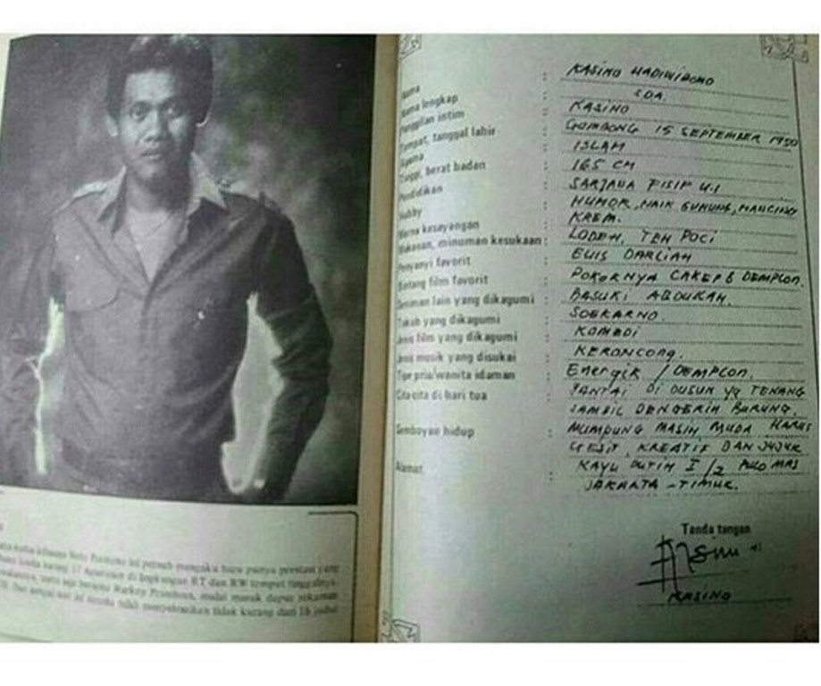 Merayakan hari ulang tahunnya, salah satu akun gosip Instagram, ikut merayakan dengan mengunggah biodata Kasino yang ditulis sendiri oleh almarhum semasa hidupnya.