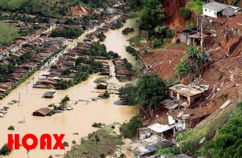Satu lagi foto hoax banjir Pangandaran yang beredar di media sosial. Pada foto itu terlihat banjir menggenangi sejumlah rumah dan hampir menutupi atap. Terlihat pula rumah yang terlihat hancur akibat terjadinya longsor.