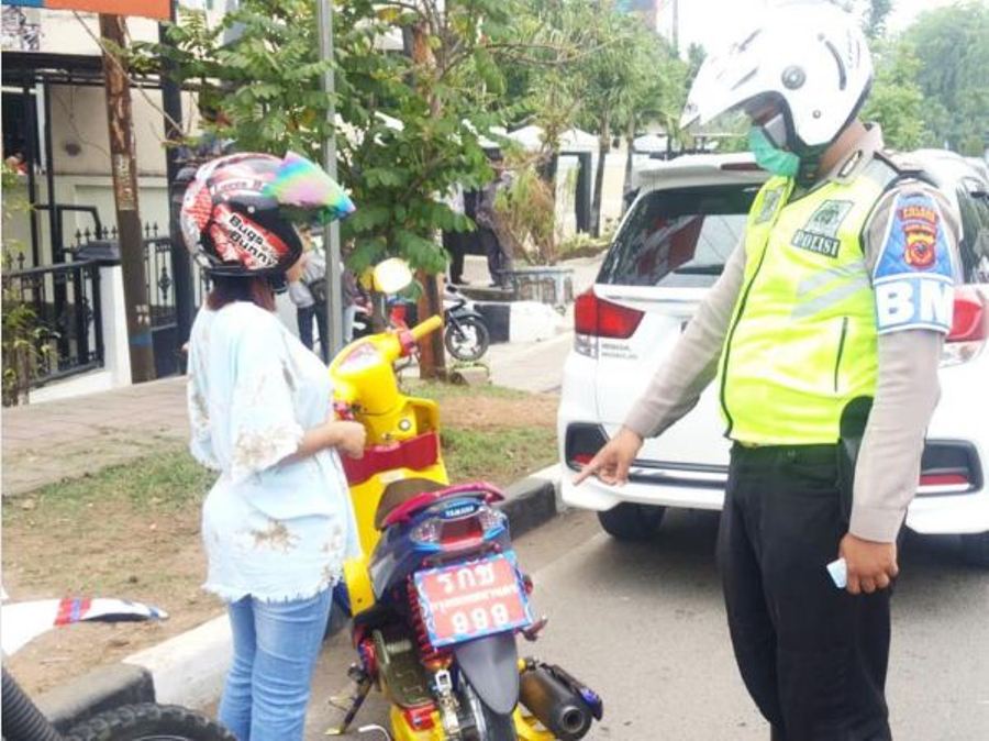 Begitu pun di Karawang, seorang wanita pengendara motor juga terlihat harus berurusan dengan polisi lantaran menggunakan plat nomor Thailand pada motornya.
