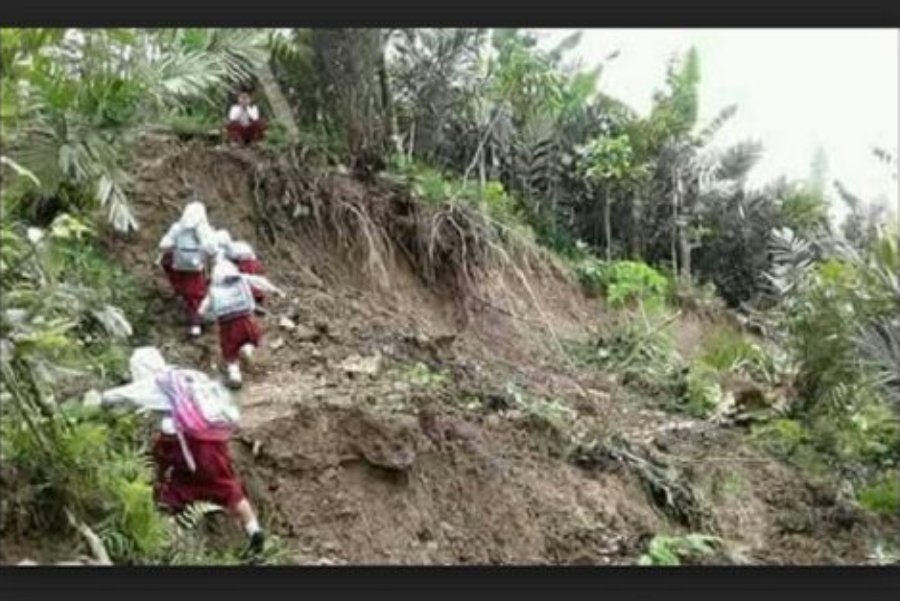 Namun rupanya sebagian siswa SD tersebut lebih memilih melewati area longsor yang kondisi tanahnya masih labil. Bahkan di sisi jalur yang mereka lewati, ada jurang ratusan meter yang mengarah ke Sungai Merawu.