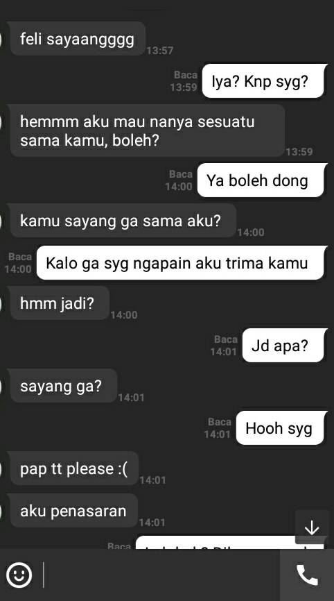 Berikut isi percakapan antara Feli dan sang pacar yang minta foto macem-macem dibawah ini.