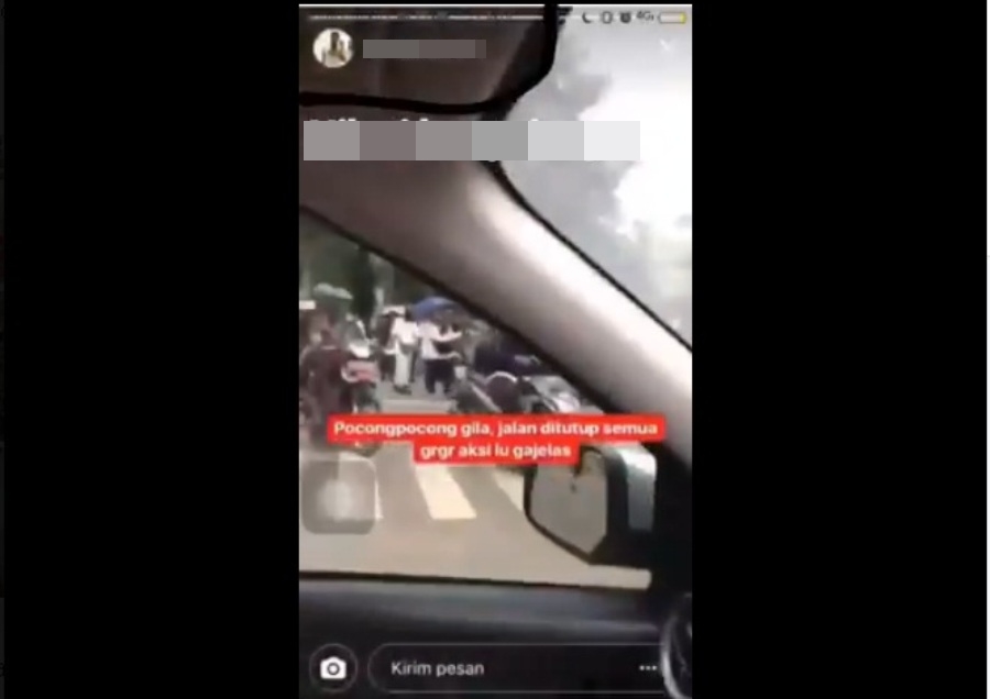 “Gara-Gara pocong-pocong si*l*n ini, pocong-pocong s*al*n yang katanya pembela Islam-pembela Islam ta* tau nggak bikin macet semua jalan ditutup, a*j*ng,” ujar pria dalam mobil tersebut.