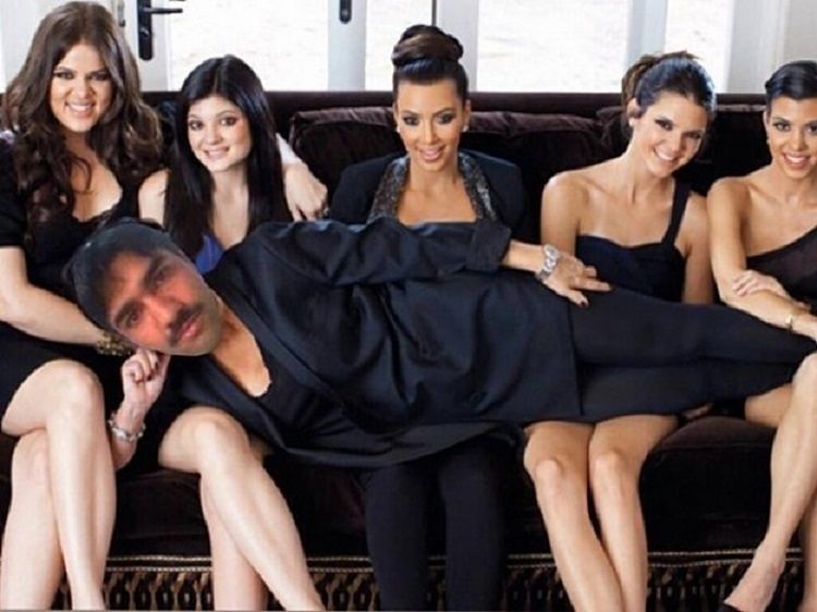 Pria ini sepertinya terobsesi dengan Kardashian bersaudara. Ia pun mengedit foto dirinya tengah dipangku oleh wanita-wanita cantik tersebut.