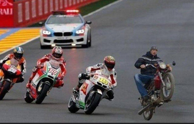 Pria ini nampaknya memiliki keinginan terpendam untuk menjadi seorang pembalap. Karena tidak juga tercapai, edit ajalah biar cepet.