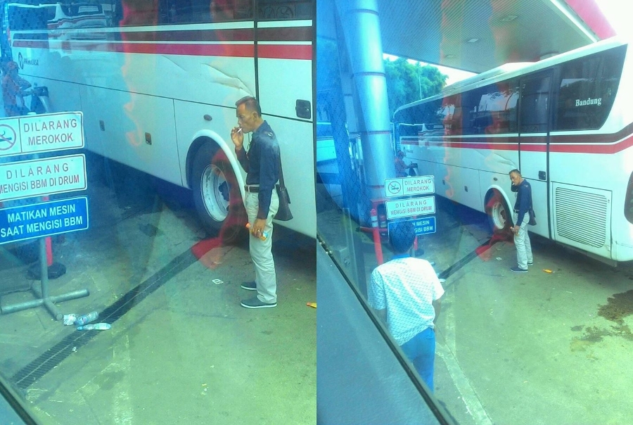 “Ga ada tindakan dari pihak keamanan… Ngerokok se enak nya di spbu.. pas deket dispenser pengisian.. 24 desember 2017 pukul 11.20 wib. TKP rest area tol jakarta – cikampek Km 57 daerah karawang,” tulis Devide Nouzze, 24 Desember 2017.