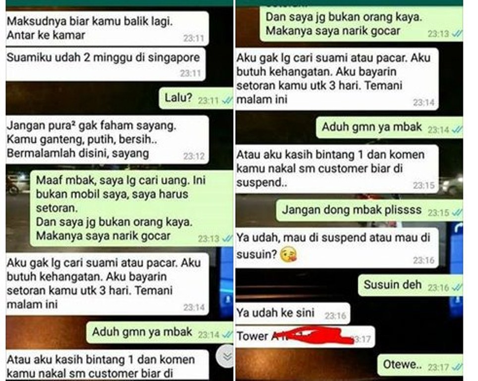 ia juga mengancam akan memberikan bintang 1 dan meninggalkan komentar bahwa sang driver nakal pada customernya supaya ia di suspend.