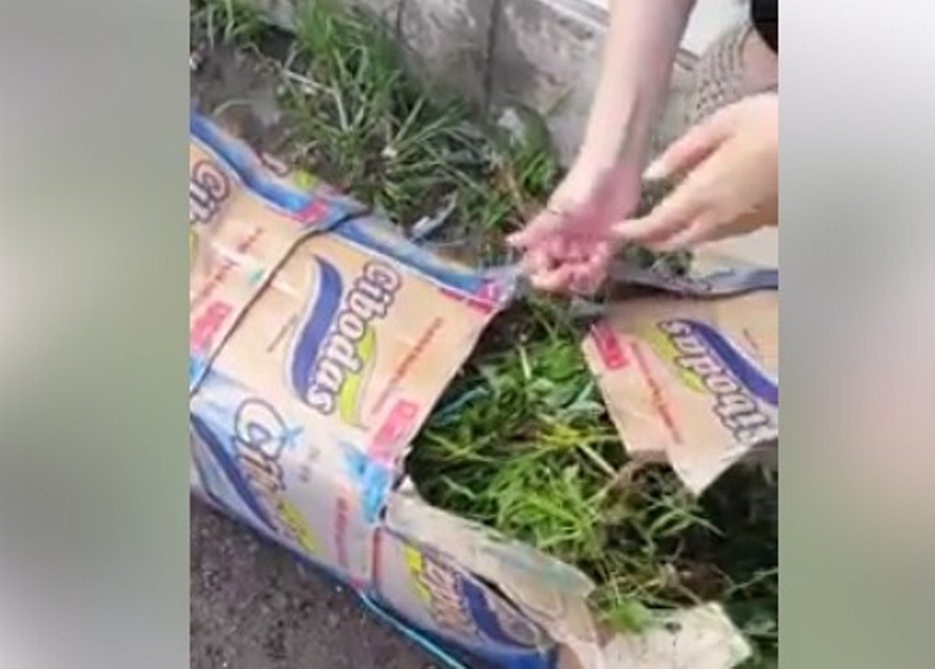‘samp keesokan hari nya blum jg datang ngambil barangnya..saya penasaran apa sih yg ada di dlm kardus itu..pas saya perhatikan di sela kardus ada rumput kering