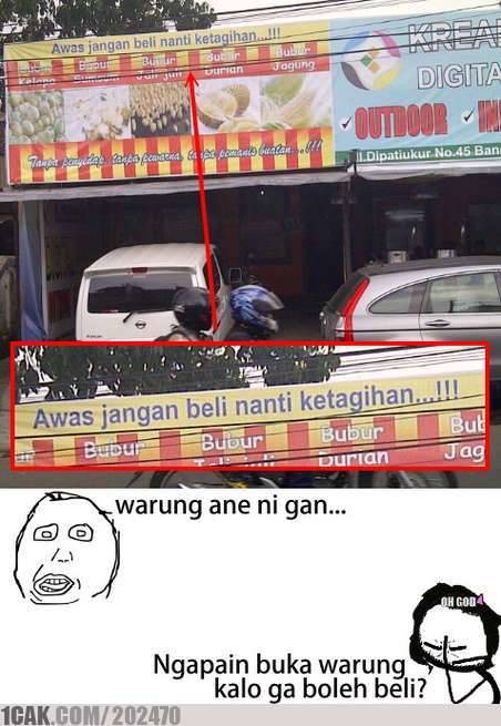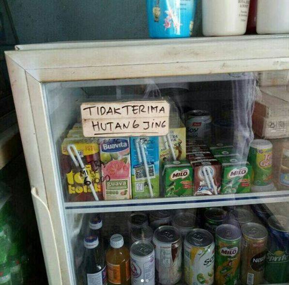 Si warung-warung yang ada di pedesaan, biasanya mereka menerima bon bagi pembeli yang memang belum memiliki uang untuk membayar. Tapi penjual yang satu ini mungkin sudah terlalu lelah, makanya bikin peringatan kayak gini.