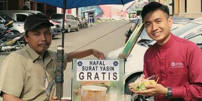 Kalau yang satu ini si bapak patut diacungi jempol nih. Dia berani bikin dagangannya gratis bagi pembeli yang hafal surat yasin. Mantap banget pak!