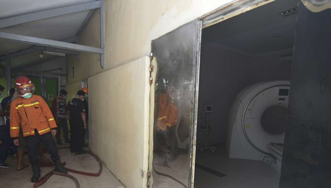 “Terdengar seperti ada tabung yang jatuh, padahal di runagan tidak ada tabung. Beruntung api bisa dipadamkan. Kejadian itu sempat membuat pasien panik,” kata Indra.