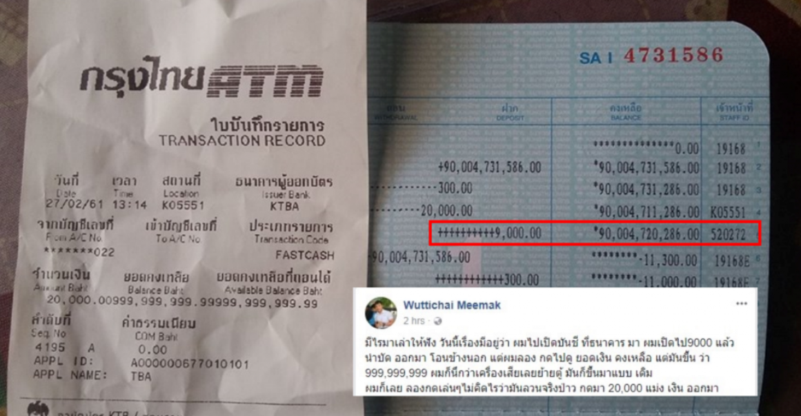 Pihak bank pun berterima kasih kepada Meemak karena melaporkan kesalahan tersebut kepada pihak bank. Setelah diperbaiki pihak bank, saldo Meemak pun kembali menjadi 9.000 baht.