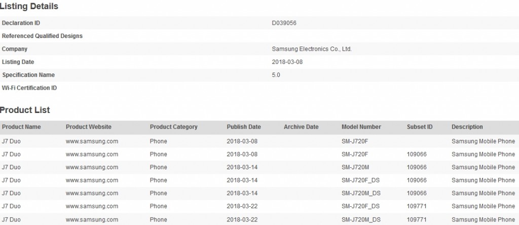 Beberapa dokumen sertifikasi Bluetooth menyebutkan bahwa handset adalah J7 Duo. Duo bisa jadi merupakan nama model untuk pasar-pasar tertentu.