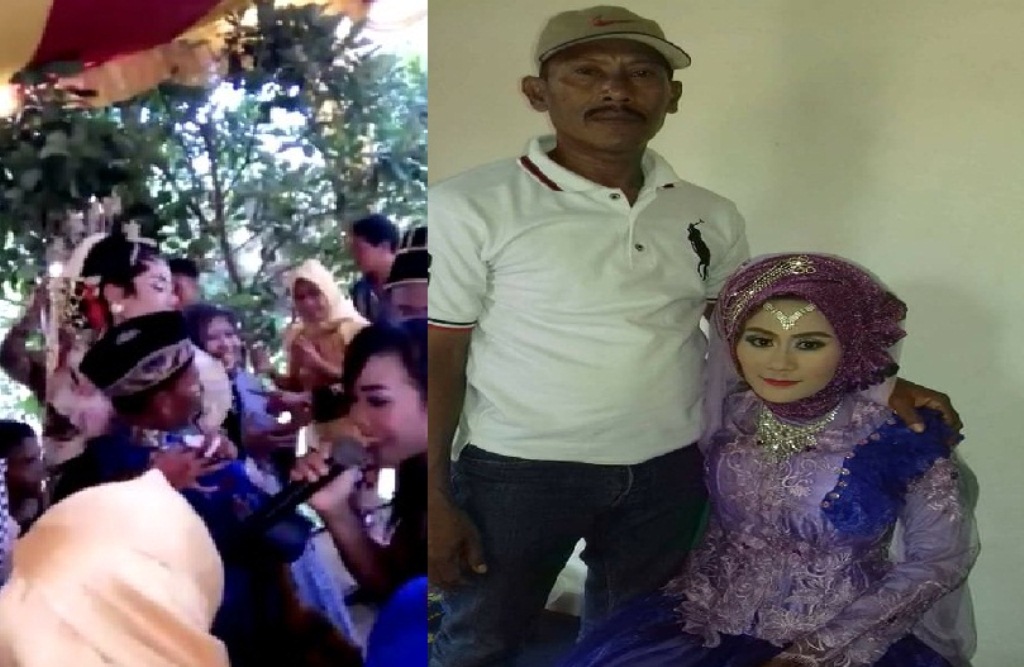 Tangis bahagia pyn pecah ketika Santa ditimang oleh ayahnya di atas panggung di hari pernikahannya.