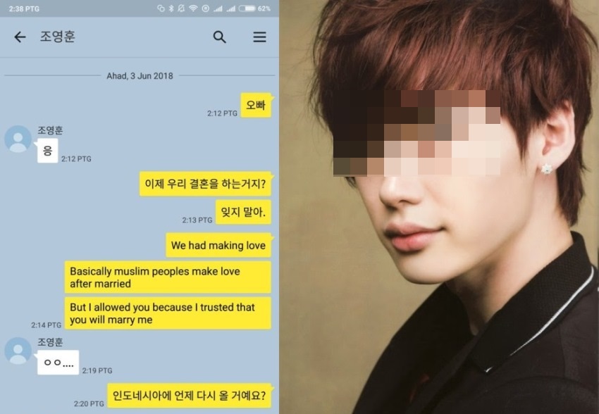 Dalam percakapannya itu si wanita meminta pertanggung jawaban kepada oppa Korea karena sudah ‘menidurinya’.