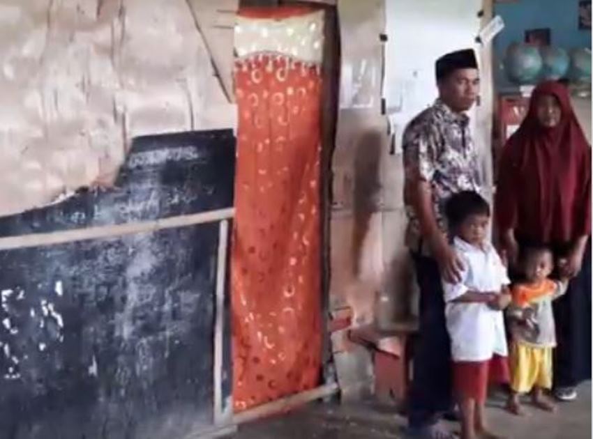Kondisi yang memprihatinkan itu pun memaksa ia beserta keluarganya terpaksa harus tinggal di ruang guru yang disekat dengan tripleks.