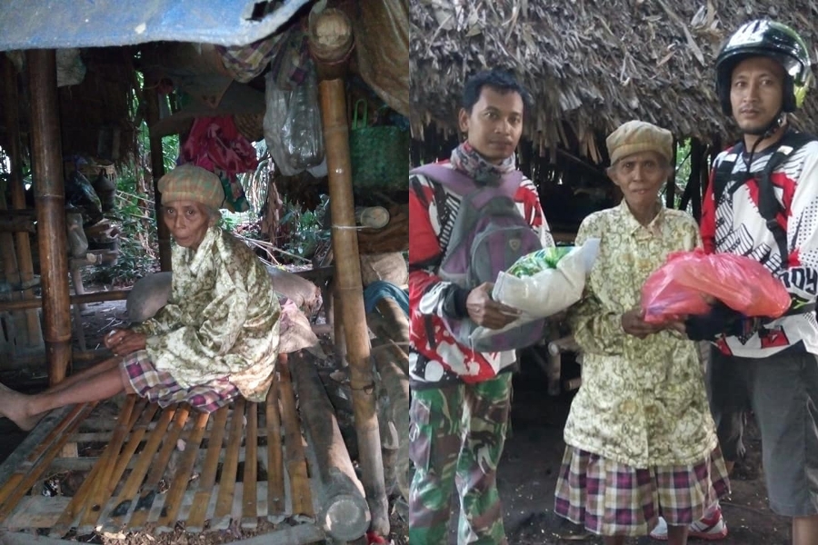 Potret mengenaskan nenek hidup di hutan itu diketahui manakala komunitas motor trail melakukan aksi sosial bagi-bagi sembako.
