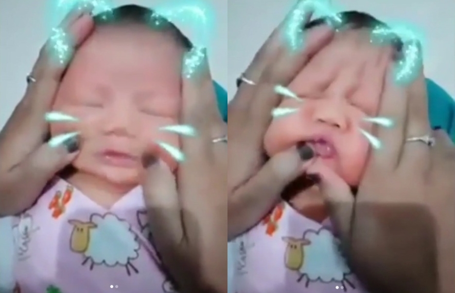 Dalam video itu, wajah bayi itu dipermainkan sedemikian rupa dengan iringan lagu dan efek dari aplikasi yang tengah digandrungi banyak netizen itu.