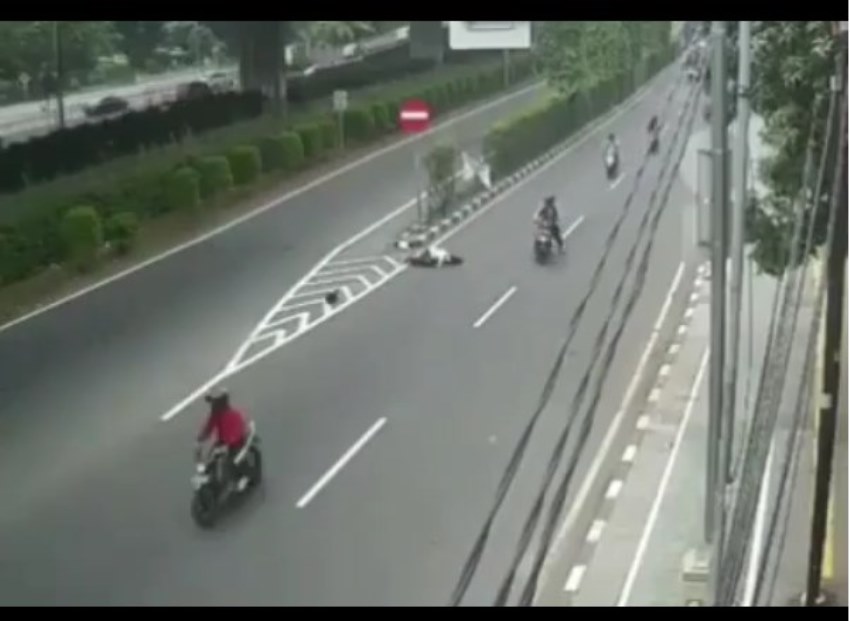 “Pelaku jambret di Flyover Cempaka Putih arah Sunter, pelaku Sweater Merah motor Satria FU. Penumpang dari Grab-bike ibu-ibu langsung meninggal di TKP.