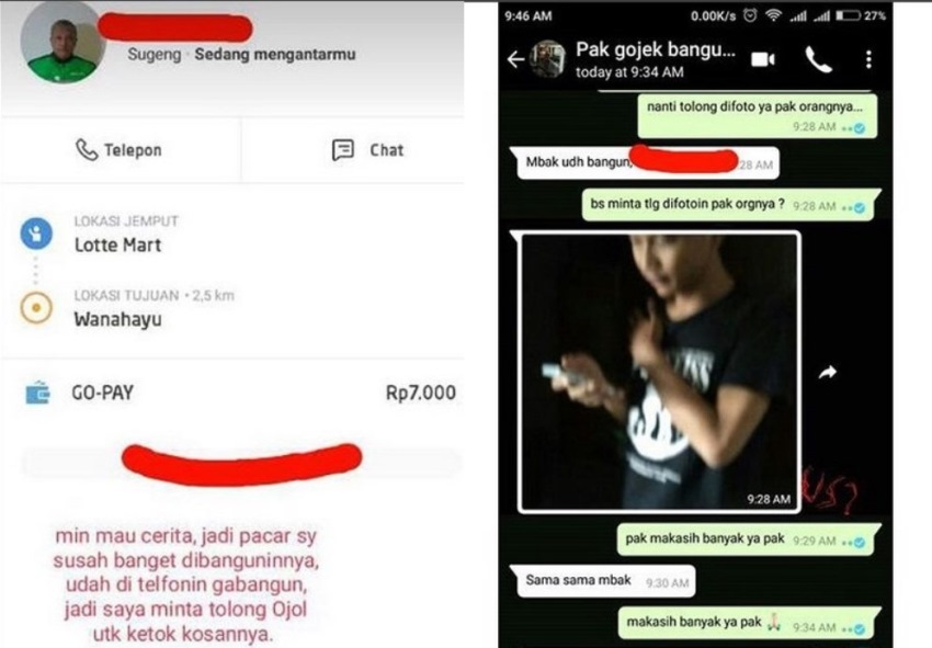 Wanita yang tidak diketahui namanya itu nekat memesan ojol hanya untuk membangunkan pacarnya yang sedang tidur di kosan.