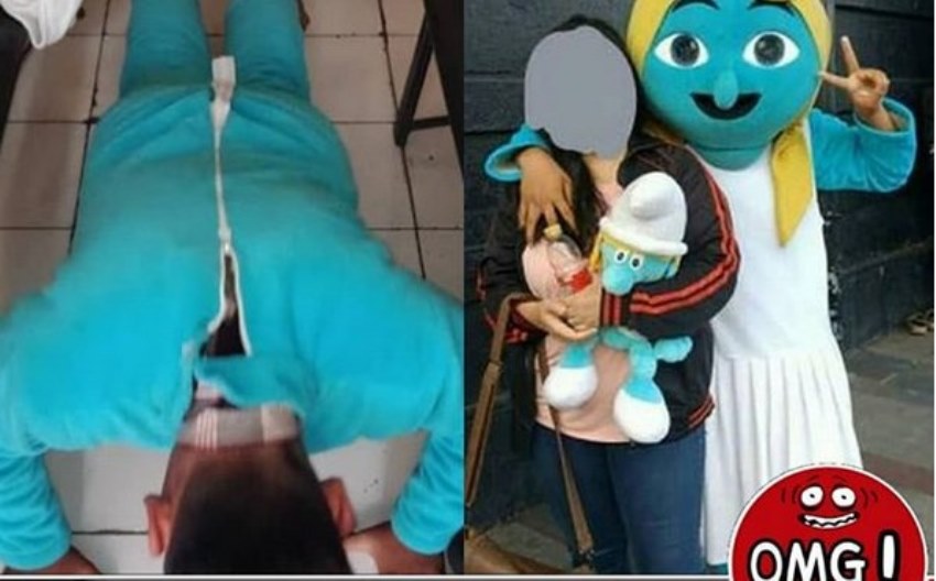 Bukannya minta maaf, badut Smurf itu justru masih meminta uang kepada wanita tersebut sebagai imbalan foto bareng.