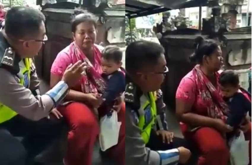 Ibu tersebut diberi sejumlah uang oleh polisi tersebut dan disuruh naik bus karena kasihan dengan sang anak yang masih kecil.