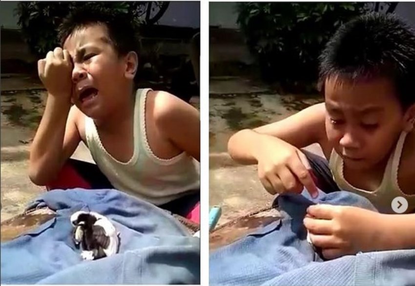 Seperti halnya yang dilakukan bocah laki-laki ini. Ia sampai menangis histeris melihat anak ayamnya yang tengah sekarat.