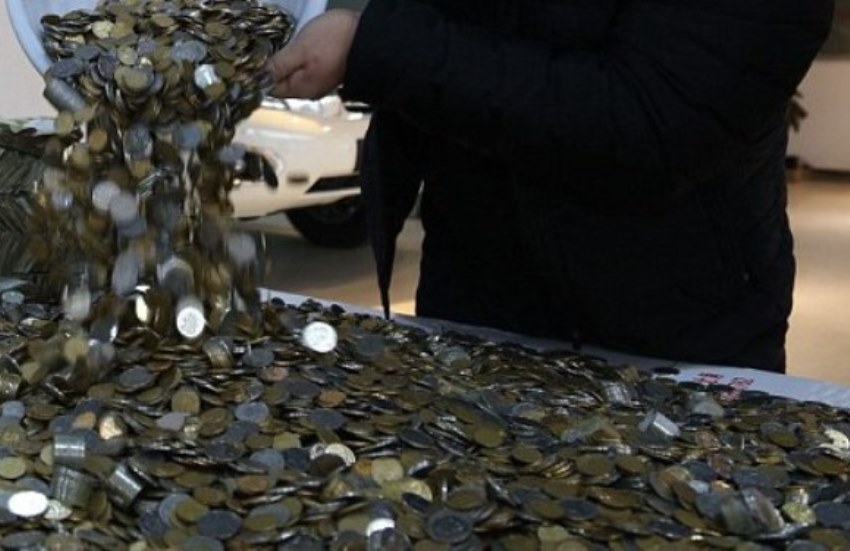 Ia muncul dengan truk penuh koin untuk membeli 1 unit mobil BMW seharga 480.000 yuan atau lebih dari Rp 1 miliar.