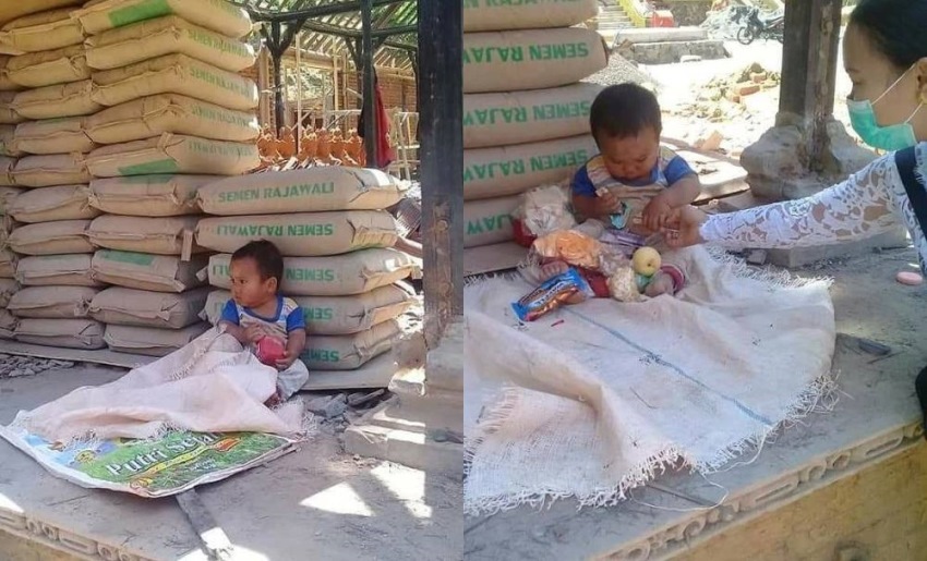 Sejah usia 1 tahun bocah bernama I Wayan Widiana setia menunggu Ayahnya yang bekerja di proyek renovasi pura hingga 9 jam sehari.